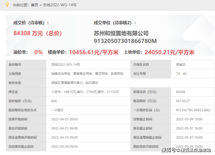成交楼面价10457元/平。